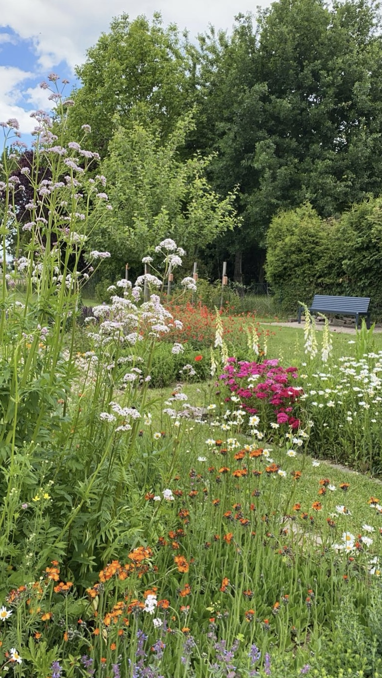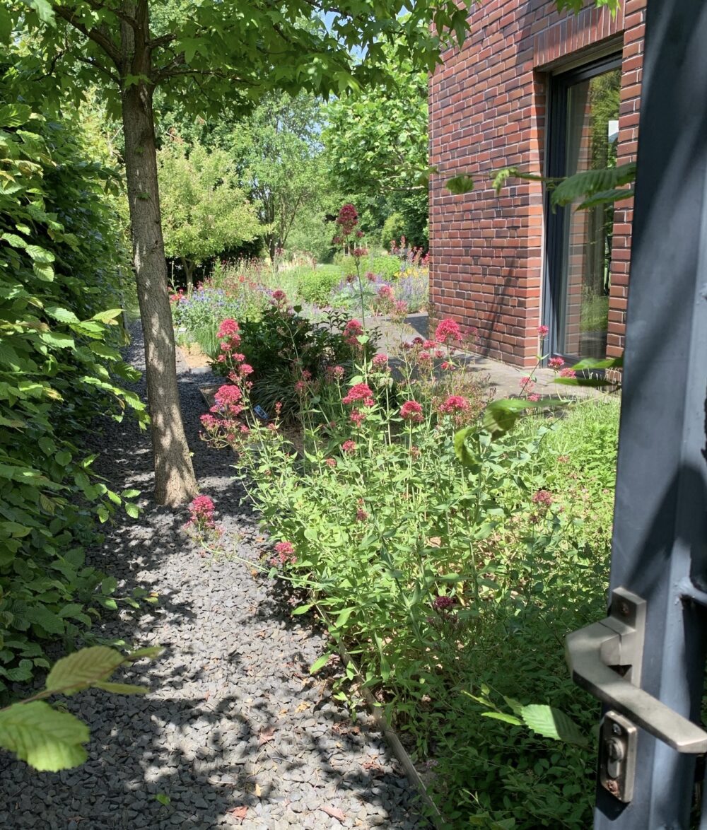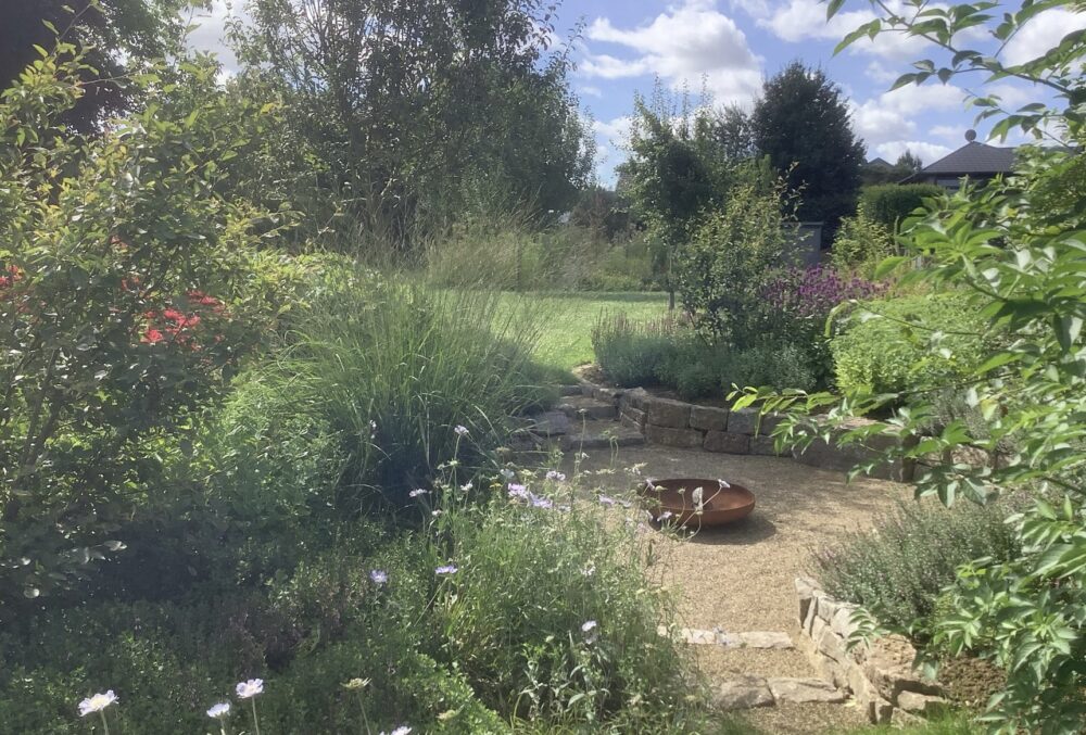 2.600 qm großer Privatgarten, naturnah angelegt mit Staudenbeeten, Nutzgarten, Gewächshaus, Obstwiese, Senkgarten, Hecken usw.