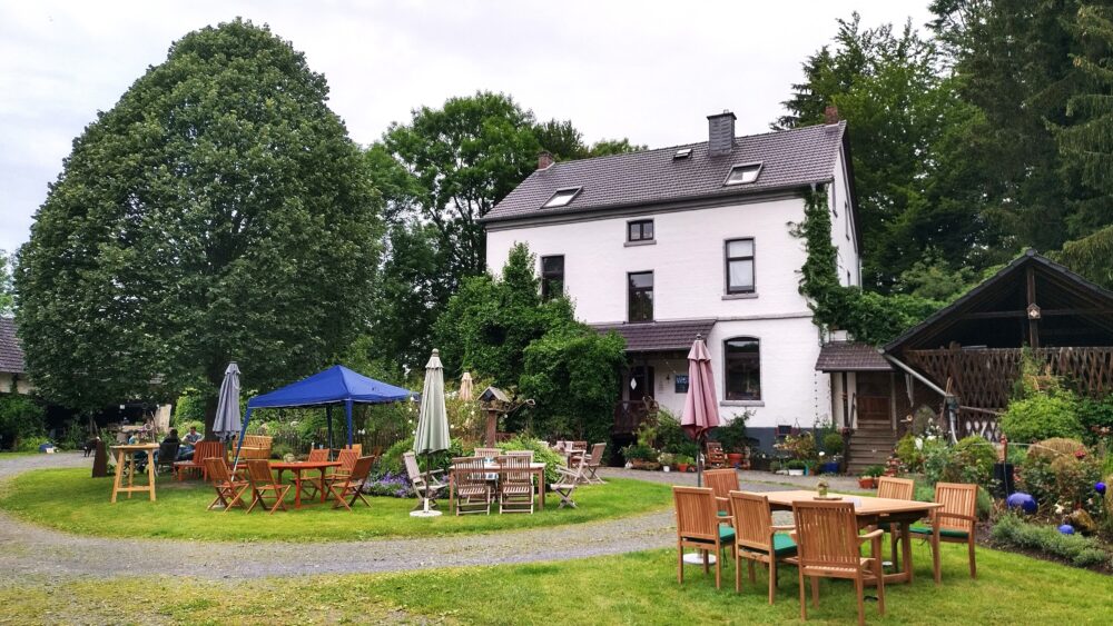 Ein Gartencafe im Innenhof sorgt für das leibliche Wohl, während befreundete Musiker und Künstler ihre Werke präsentieren.