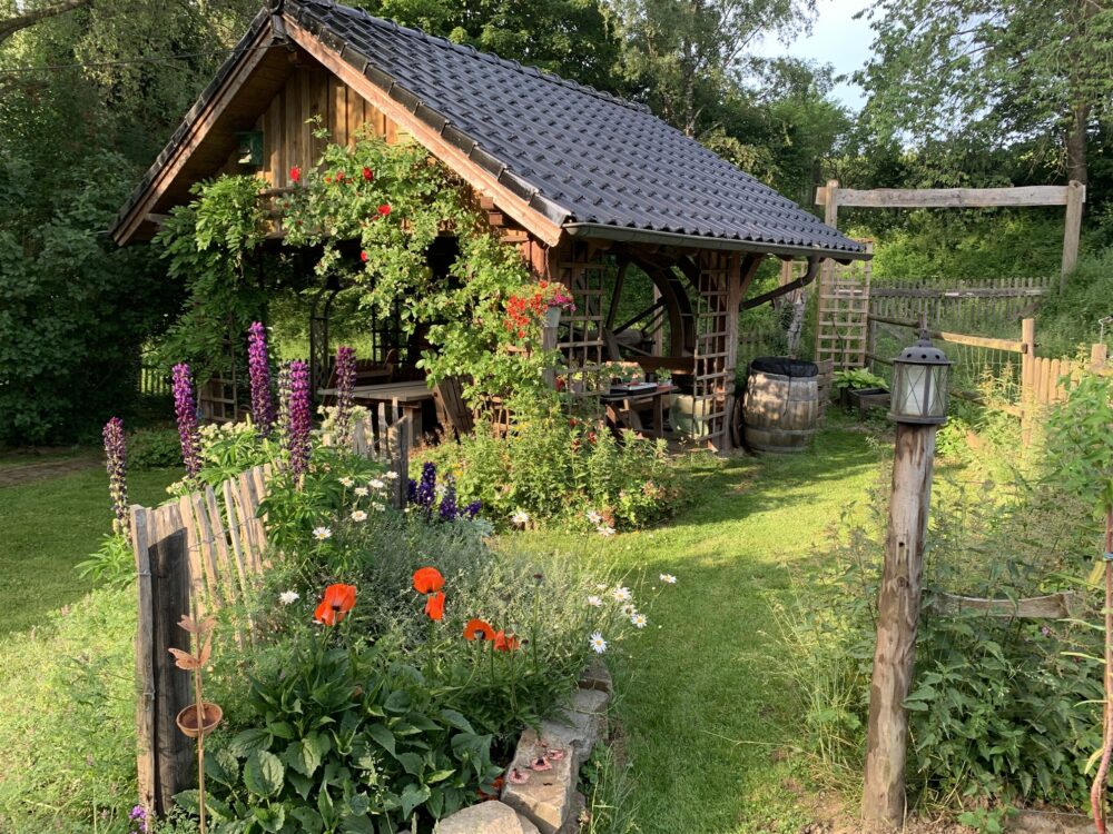 Ländlich gelegen bietet unser Garten vor allem vielen Vogelarten und anderen Tieren ein zu Hause. Der ursprüngliche Traum vom Bauerngarten entwickelte sich über die Jahre zu einem Mix aus unterschiedlichen Bereichen (Gemüsegarten, Obstgarten, Naturgarten), die sich immer wieder verändern und mit neuen Projekten, wie Sitzecken oder Wasserstellen, erweitert und ergänzt werden. Gemeinsam mit unseren Tieren genießen wir das Leben auf dem Land.